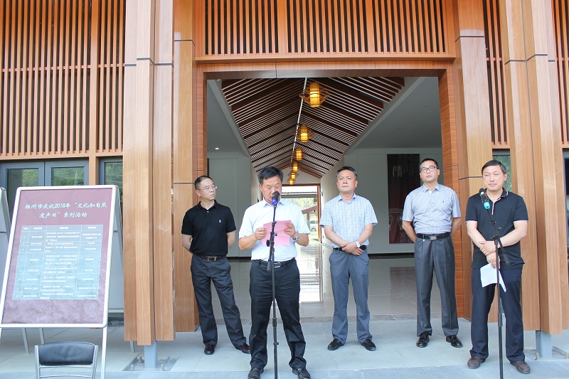 6月8日下午,揚(yáng)州市2018年“文化和自然遺產(chǎn)日”系列活動(dòng)在我公司建設(shè)并裝潢的隋煬社區(qū)公園展示館開(kāi)啟。文物局局長(zhǎng)華德榮,副局長(zhǎng)徐國(guó)兵,西區(qū)新城管委會(huì)副主任曹波、西區(qū)新城規(guī)劃建設(shè)局局長(zhǎng)汪文出席開(kāi)啟儀式,我公司副總經(jīng)理任光祥參加并發(fā)言。
