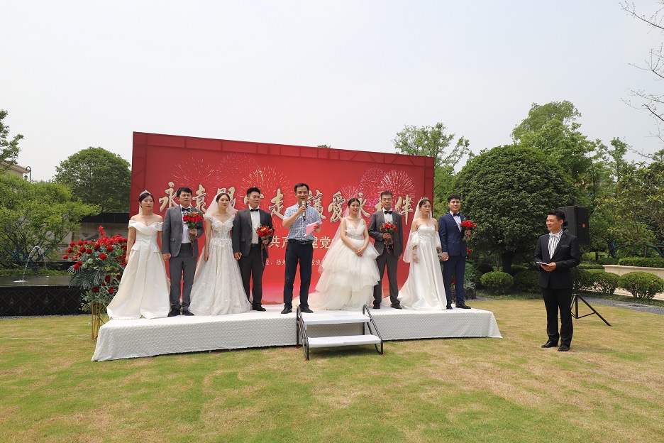 系列活動(dòng)三:“永遠(yuǎn)跟黨走 讓愛(ài)永相伴”集體婚禮 7月1日上午,在中國(guó)共產(chǎn)黨成立99周年的大喜日子,公司黨支部組織公司黨員干部職工為公司四對(duì)新人舉辦了一場(chǎng)別開(kāi)生面的集體婚禮。 婚禮現(xiàn)場(chǎng),公司黨支部副書(shū)記、總經(jīng)理趙建理受維揚(yáng)發(fā)投黨支部、董事會(huì)的委托,代表維揚(yáng)發(fā)投全體同仁為幾對(duì)新人送上最美好的祝愿的同時(shí),也向幾位新人提了兩點(diǎn)希望: 一是希望幾對(duì)新人在今后的的生活中傳承良好家風(fēng),互敬互愛(ài)、和睦相處,孝敬雙方父母,做一個(gè)好丈夫、好妻子、好女婿、好兒媳。二是希望幾對(duì)新人在今后的工作中互相支持、互相鼓勵(lì)、積極工作,成為事業(yè)有為的好青年,為中國(guó)特色社會(huì)主義偉大事業(yè)不懈奮斗。 舉辦集體婚禮是新時(shí)代移風(fēng)易俗、婚事新辦的好形式,也是維揚(yáng)發(fā)投始終堅(jiān)持“文化塑企”的理念體現(xiàn),維揚(yáng)發(fā)投將始終堅(jiān)持“以人為本”,一以貫之關(guān)心職工、服務(wù)職工。